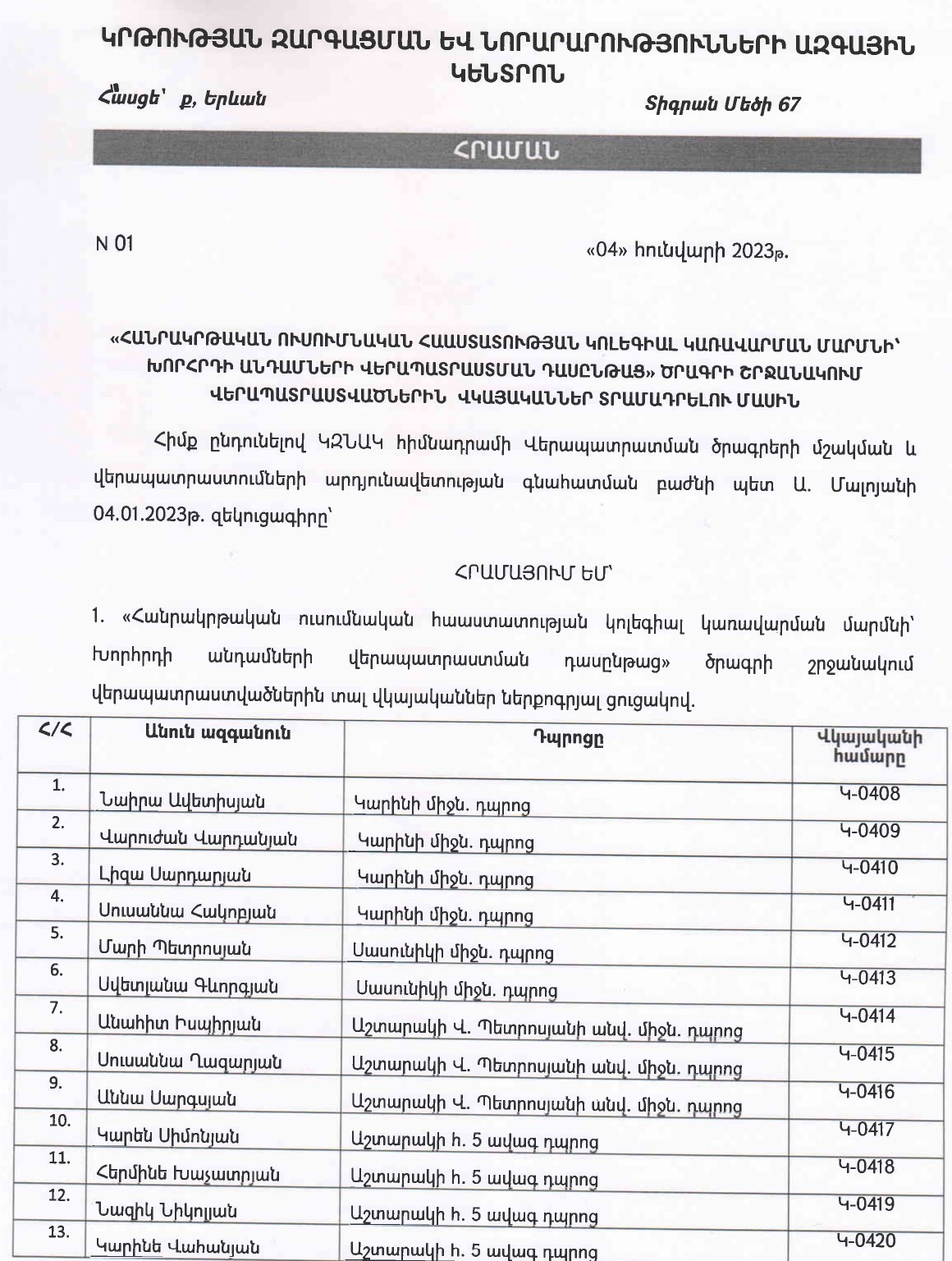 Փոփոխությունների մասին մանրամասն տեղեկատվություն կներկայացվի աշխատակազմի ներսում։